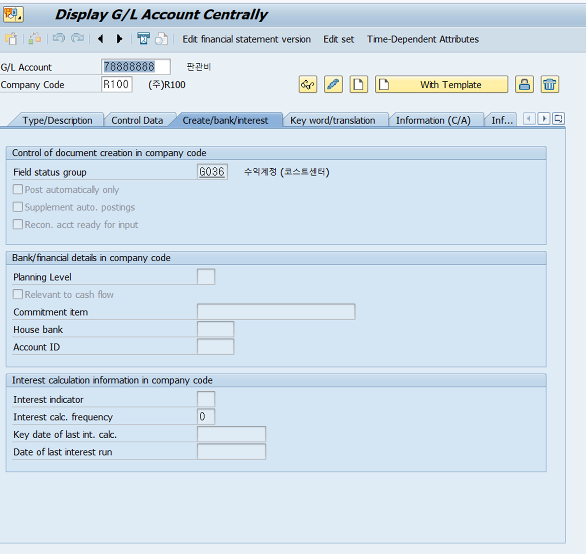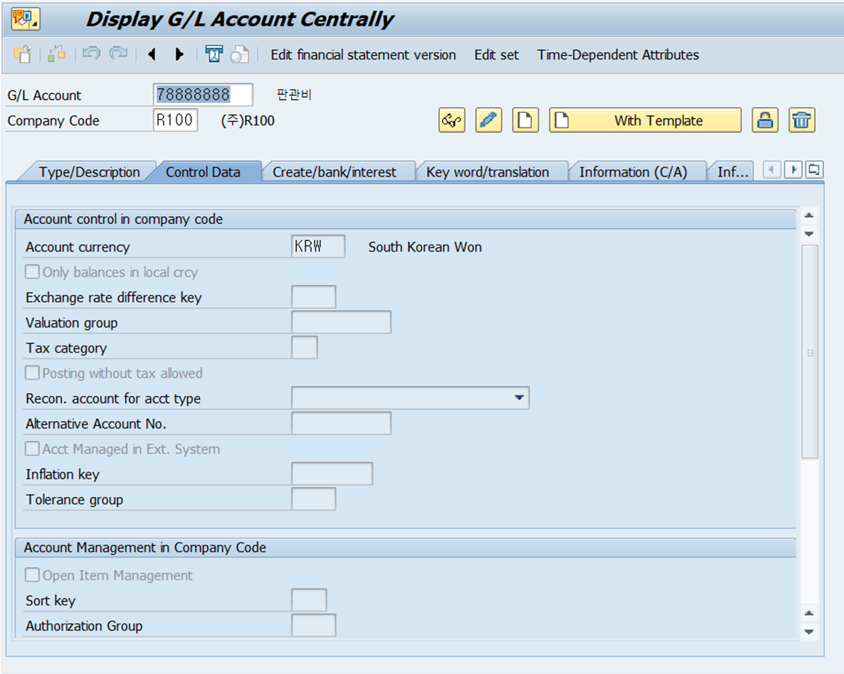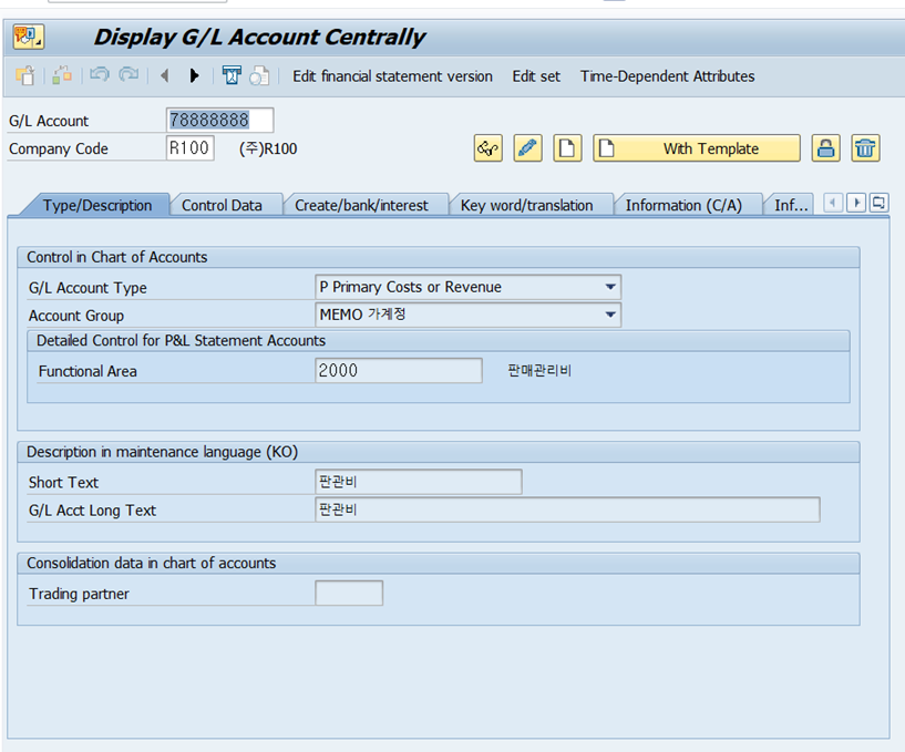 * FS00 : Centrally 는 계정과목표, 컴퍼니코드 차원 모두의 마스터 데이터를 확인 할 수 있다.