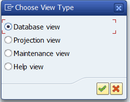 2. View의 유형을 선택할 Dialog Box가 뜨고, 아래 그림과 같습니다. 유지보수 뷰(Maintenance View))를 만들 것이기 때문에, 유지보수 뷰(Maintenance View)를 선택하고 초록색 체크박스가 있는 버튼을 클릭해줍니다.