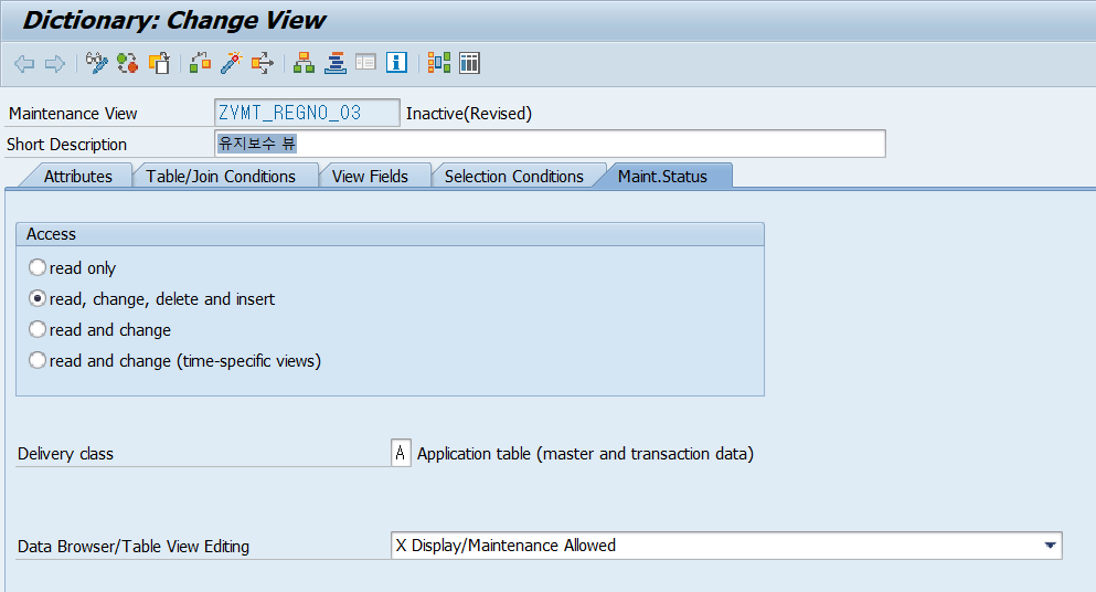 다른 뷰와 달리, 유지보수 뷰(Maintenance View)는 Open SQL 문을 사용하여 접근할 수 없습니다