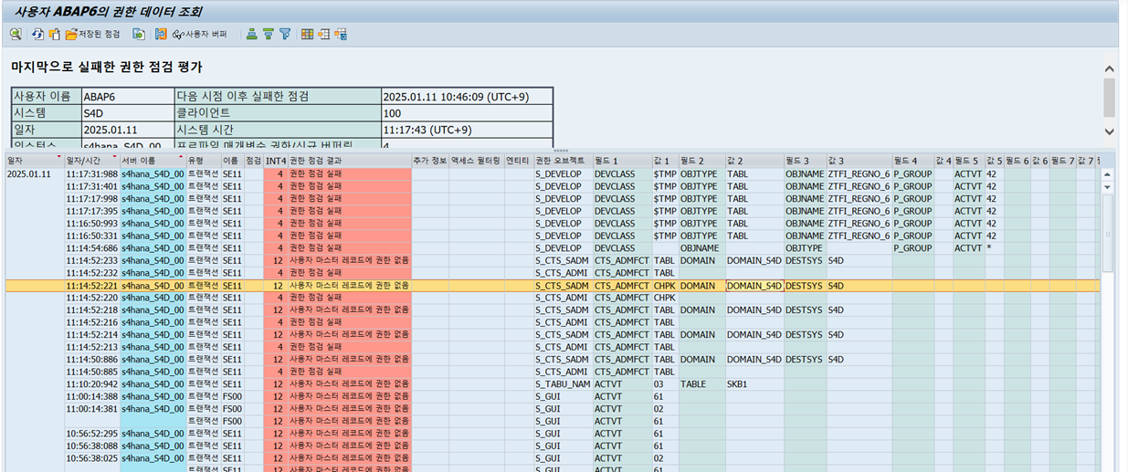 - 결과 확인: SU53 화면에 표시되는 로그에서, 부족한 권한과 관련된 세부 정보를 확인합니다
