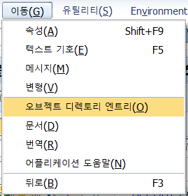 1. 상단에 '이동' -> '오브젝트 디렉토리 엔트리' 클릭