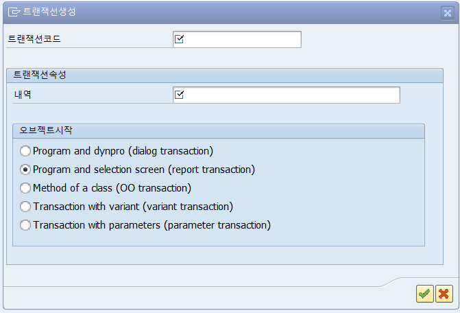 트랜잭션 코드를 만들 때는 Report Transaction 유형으로 등록합니다.