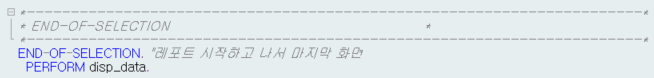 START-OF-SELECTION에서 가져온 데이터를 화면에 출력하는 영역입니다. 별도 처리 없이 넘어가기도 하고,
