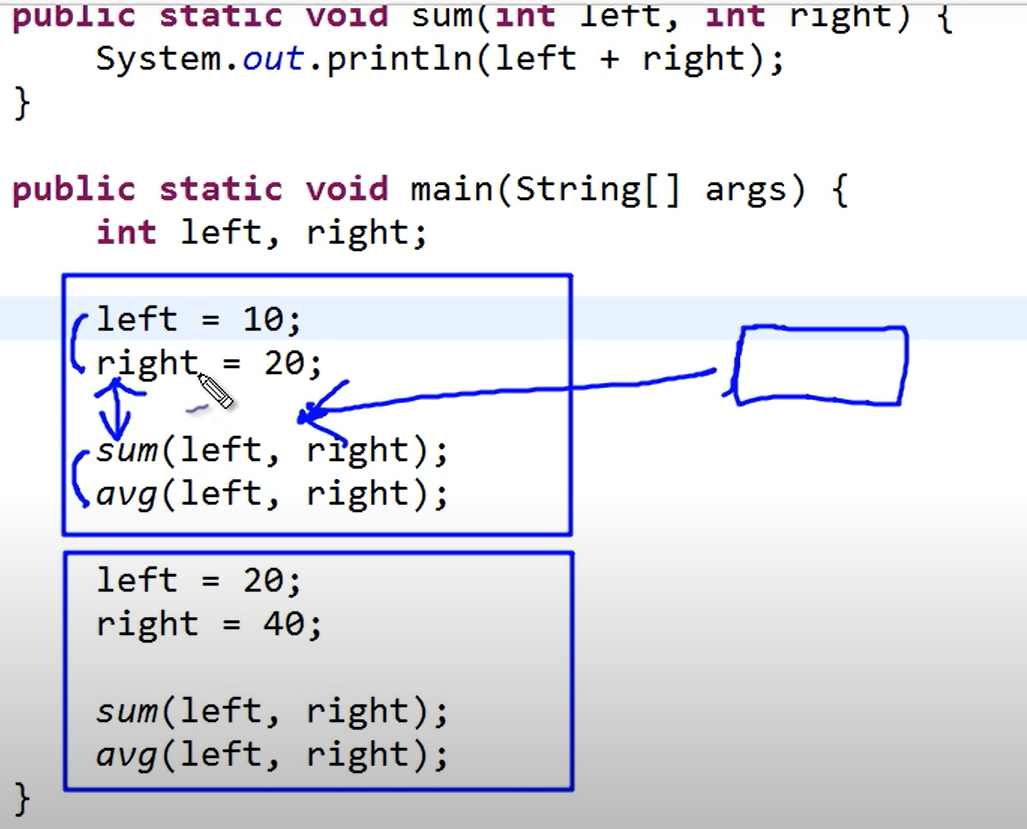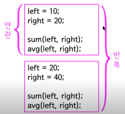 반복되고 중복된애들이 많아짐. 이전에는 연관되어있는것들을 메소드화 시킴. 인자값을 준다.