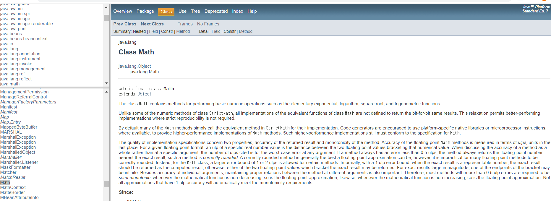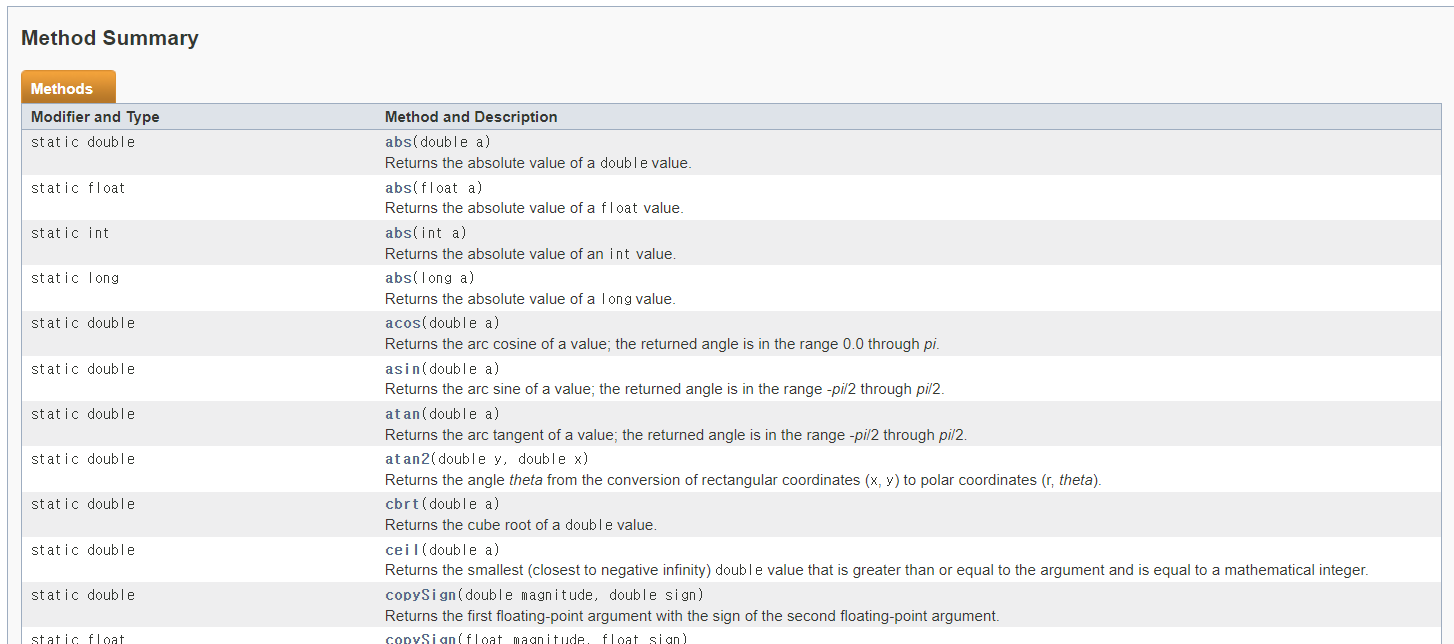 클래스 Math에는 연관되어있는 필드와 메서드가 있다.