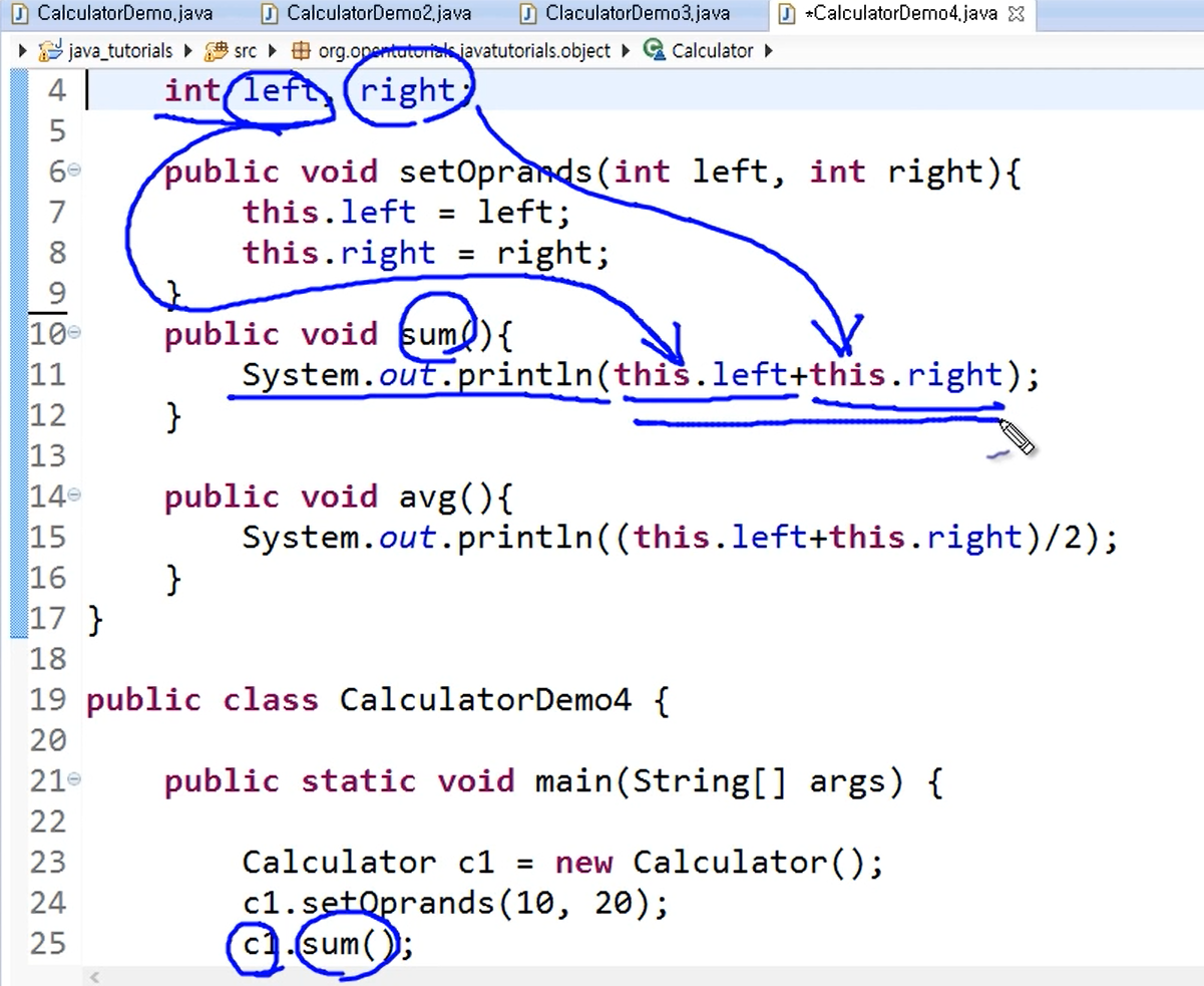 this. left는 calculator 를 구체적으로 만들며 변수를 가르킴.